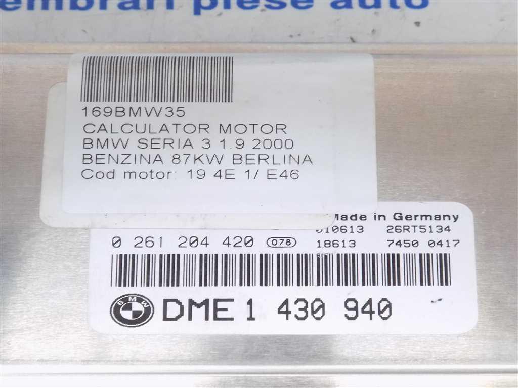 Detalii:Calculator motor BMW 318 1.9i 2000, 87KW, 118CP, euro 3, tip motor 194E1, cod: 0261204420