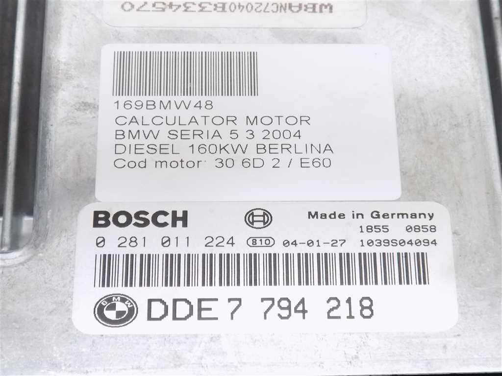 Detalii:Calculator motor BMW 530 3.0D 2004, 160KW, 218CP, euro 4, tip motor 306D2, cod: 0281011224