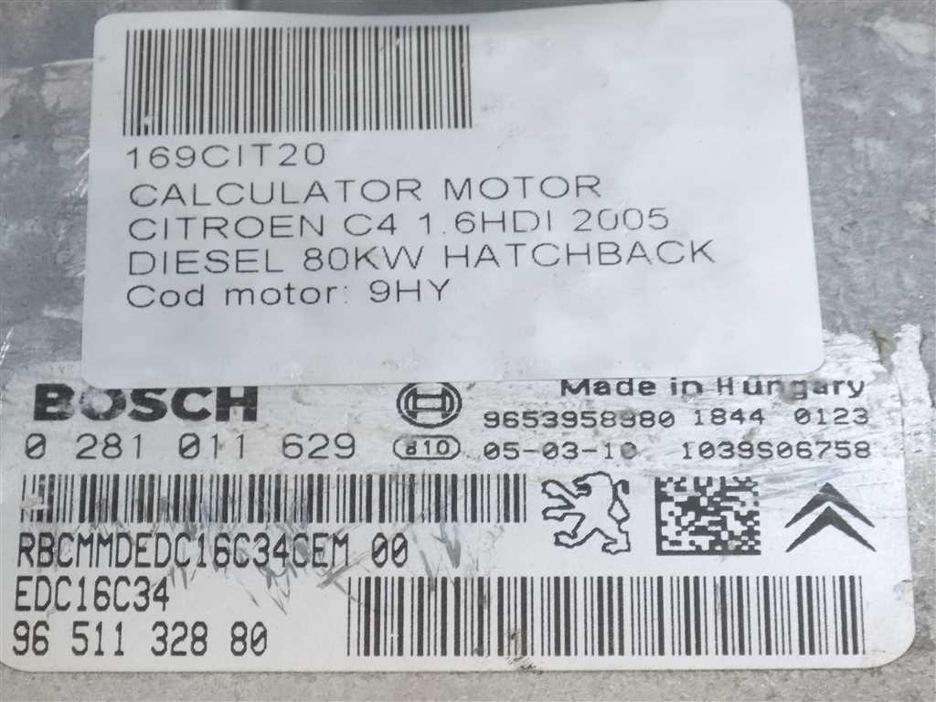 Detalii:Calculator motor Citroen C4 1.6HDI 2005, 80KW, 110CP, euro 3, tip motor 9HY, cod: 0281011629