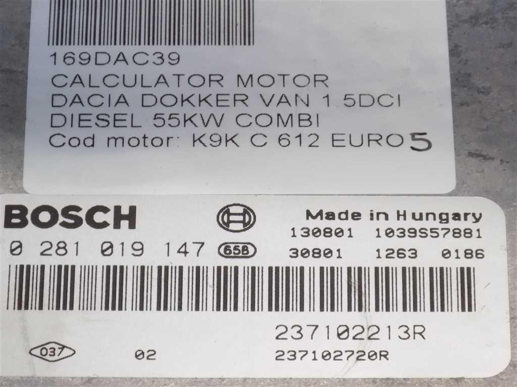 Detalii:Calculator motor Dacia Doker 1.5DCI 2012, 55KW, 75CP, euro 5, tip motor K9K 612, cod: 0271019147