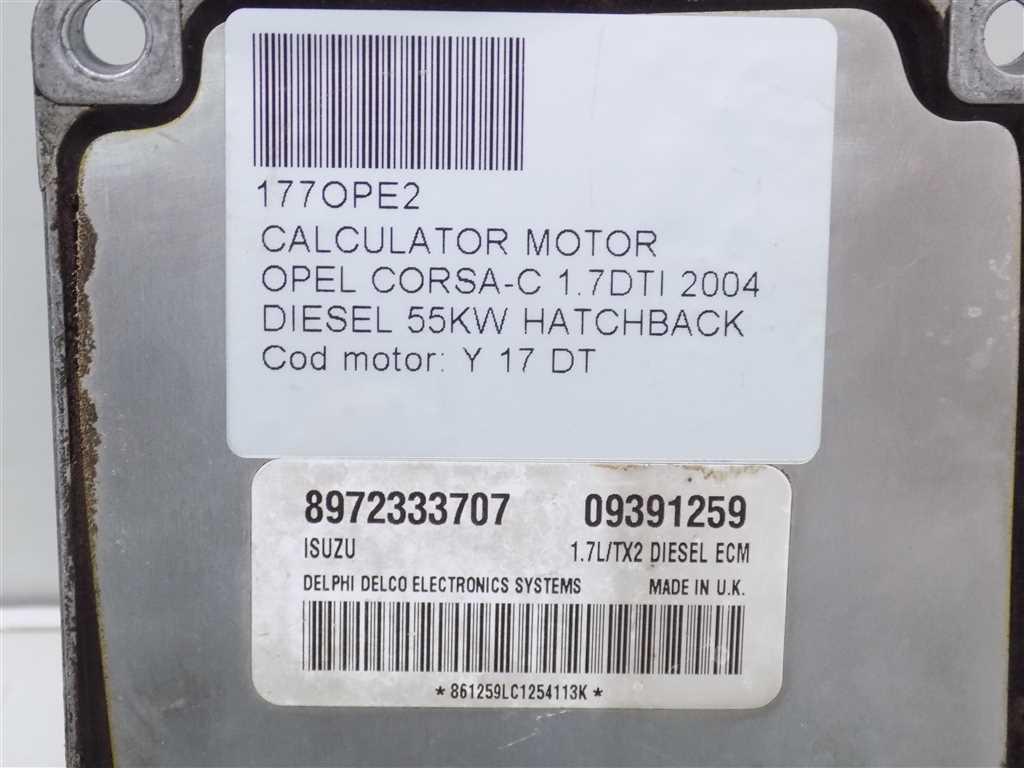 Detalii:Calculator motor Opel Corsa C 1.7DTI 2004, 55KW, 75CP, euro 3, tip motor Y17DT, cod: 89762333707