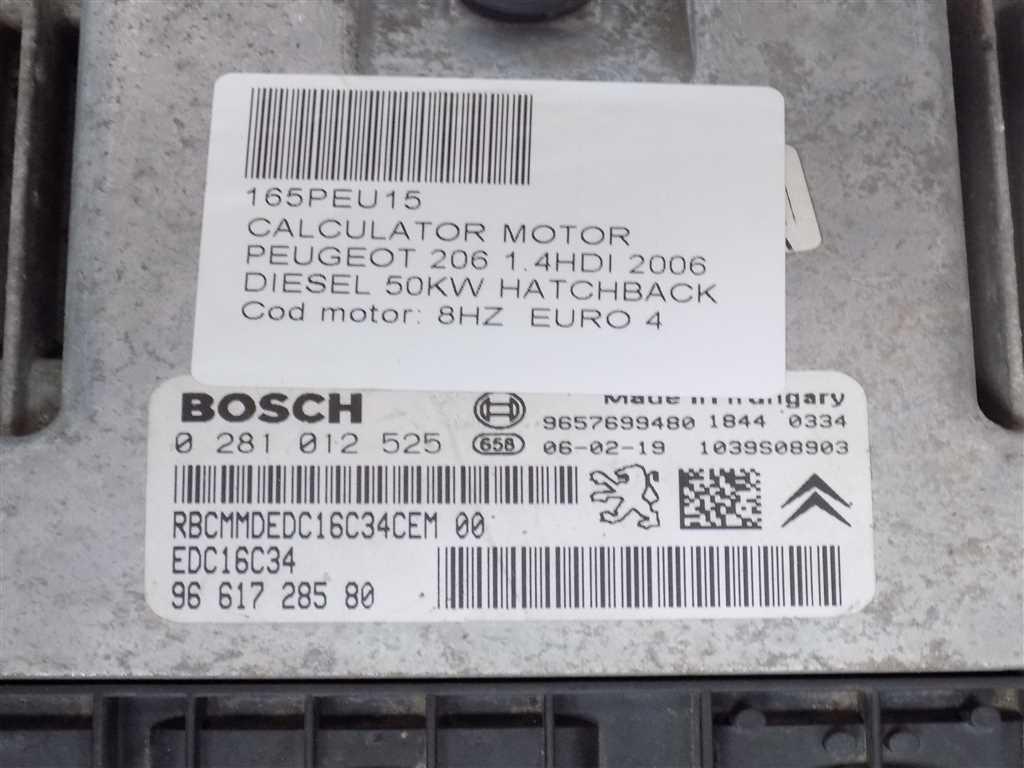 Detalii:Calculator motor Peugeot 206 1.4HDI 2006, 50KW, 68CP, ruto 3, tip motor 8HZ, cod: 0281012525