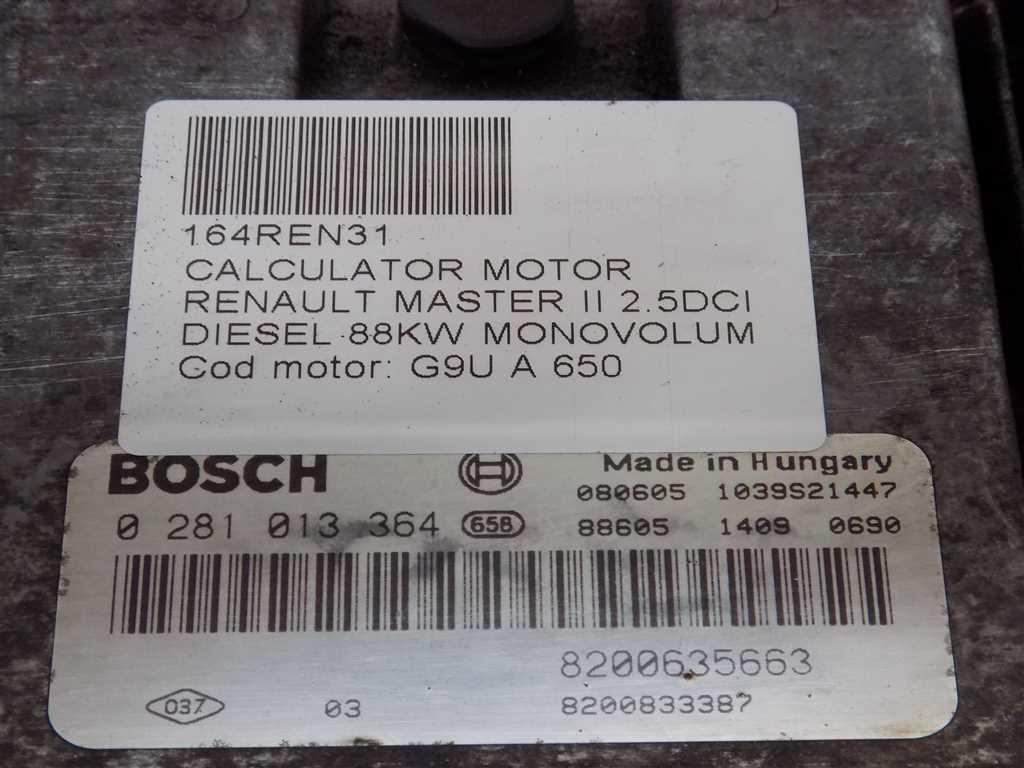 Detalii:Calculator motor Renault master II 2.5DCI 2008, 88KW, 120CP, euro 4, tip motor G9U 650, cod: 0281013364