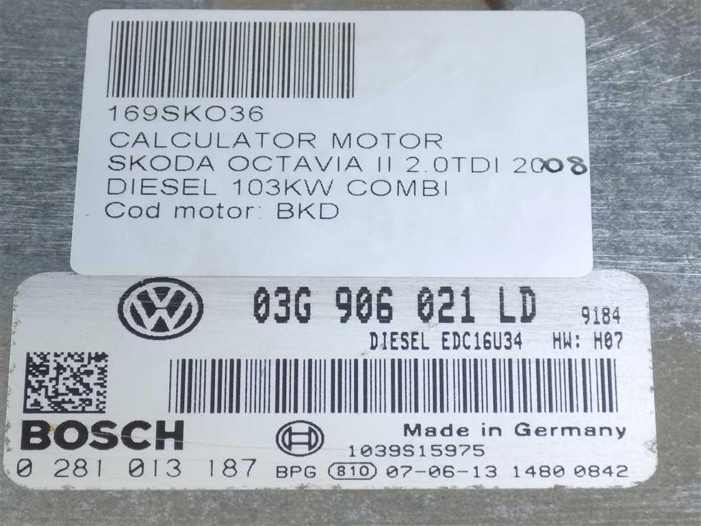 Detalii:Calculator motor Skoda Octavia II 2.0TDI 2008, 103KW, 140CP, euro 4, tip motor BKD, cod: 0281013187