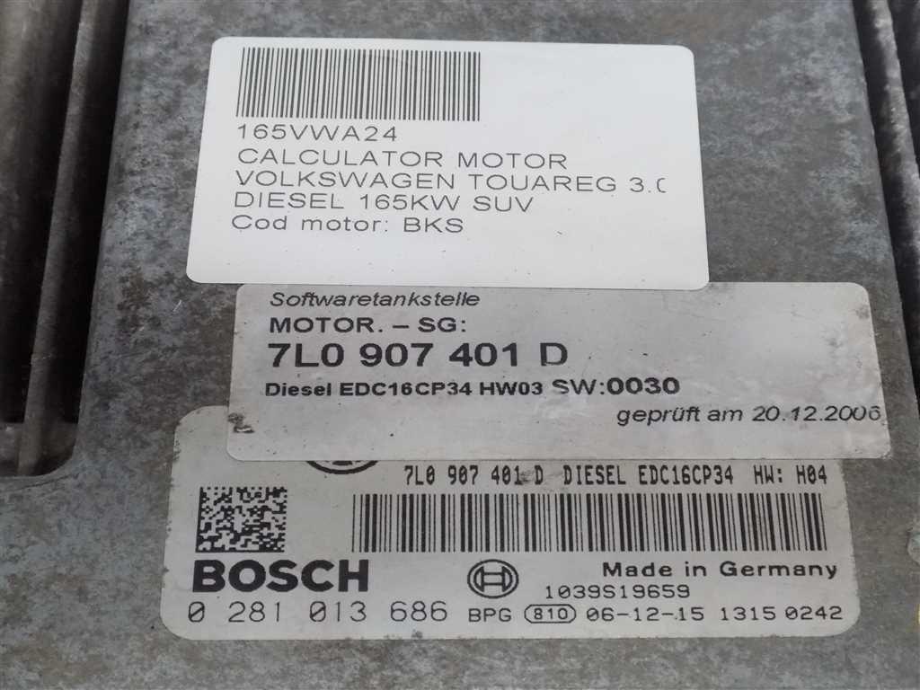 Detalii:Calculator motor Volkswagen Touareg 3.0TDI 2006, 165KW, 225CP, euro 4, tip motor BKS, cod: 0281013686