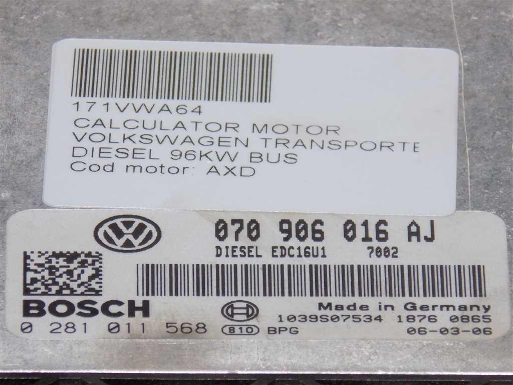 Detalii:Calculator motor Volkswagen Transporter V 2.5TDI 2007, 96KW, 130CP, euro 4, tip motor AXD, cod: 0281011568